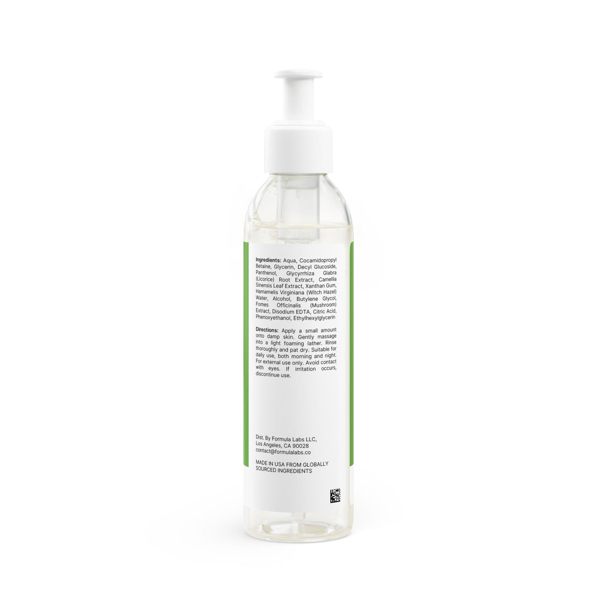 Aqua, Cocamidopropyl Betaine, Glycerin, Decyl Glucoside, Panthenol, Glycyrrhiza Glabra (Licorice) Root Extract, Camellia Sinensis Leaf Extract, Xanthan Gum, Hamamelis Virginiana (Witch Hazel) Water, Alcohol, Butylene Glycol, Fomes Officinalis (Mushroom) Extract, Disodium EDTA, Citric Acid, Phenoxyethanol, Ethylhexylglycerin.