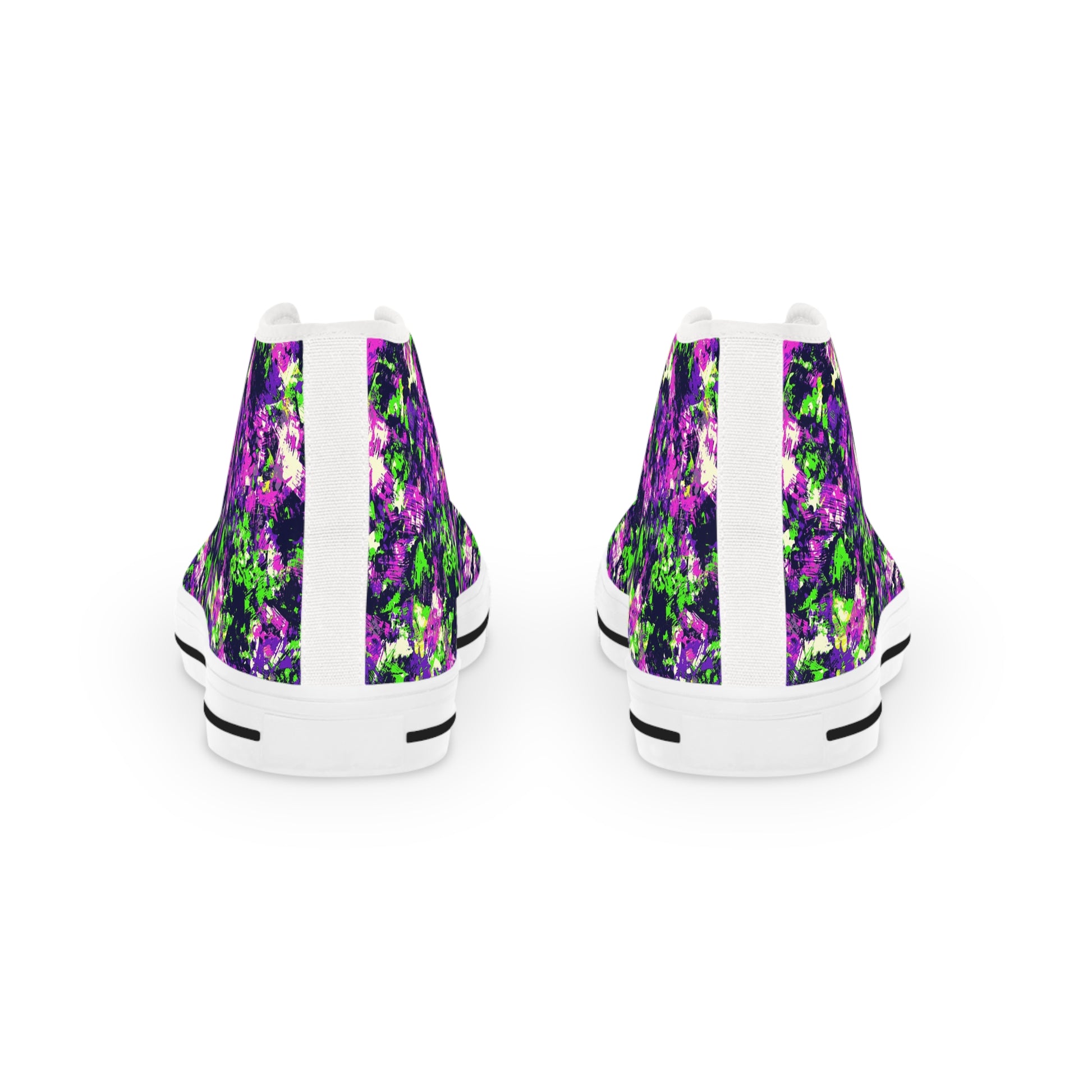 Men's High Top Sneakers with Abstract Purple and Green Design - Stylish Footwear for Casual Outfits, Trendy Streetwear, Gift for Men