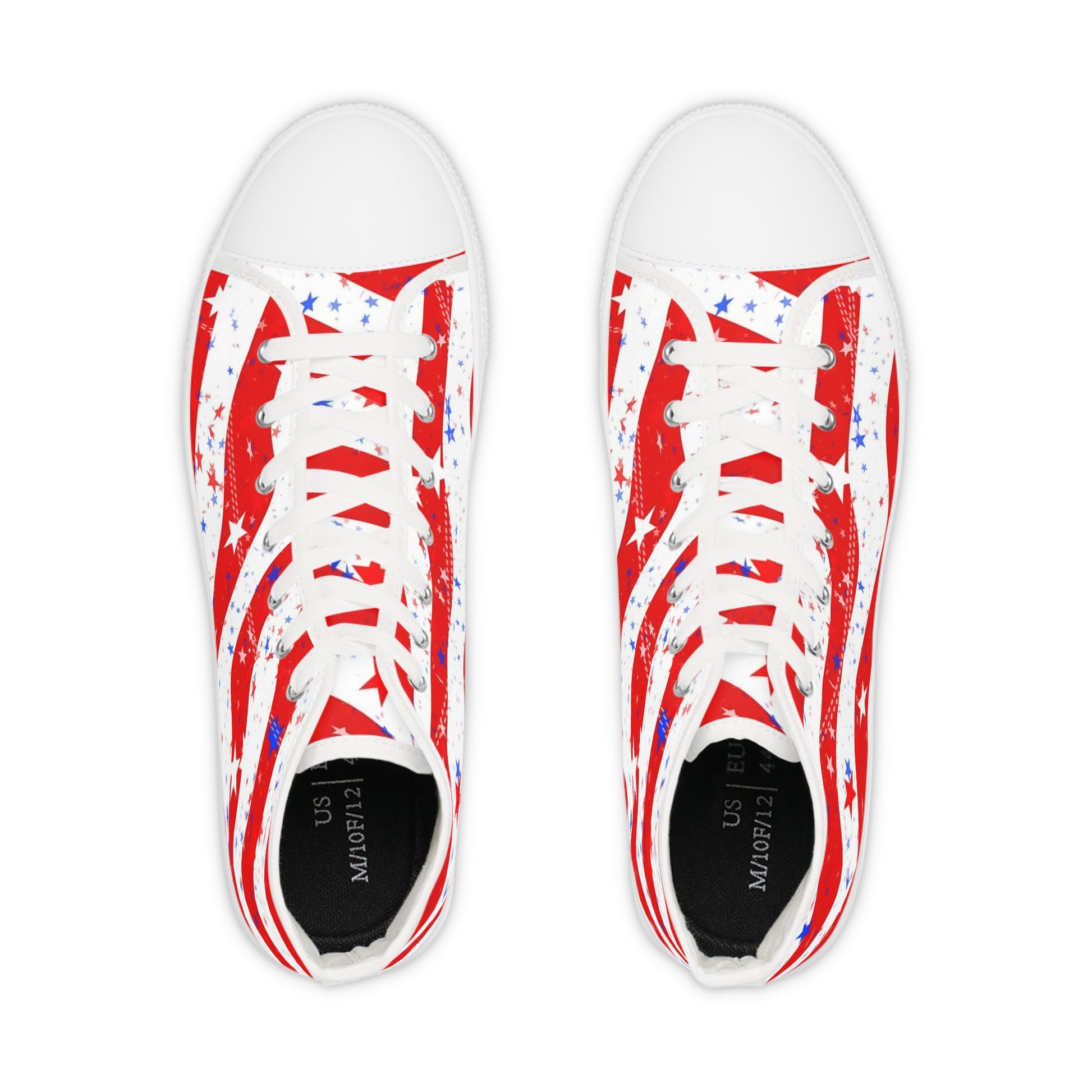 Patriotic High Top Sneakers | Independence Day Footwear, 4th of July Shoes, Red White Blue Sneakers, Summer Style, Casual Sneakers