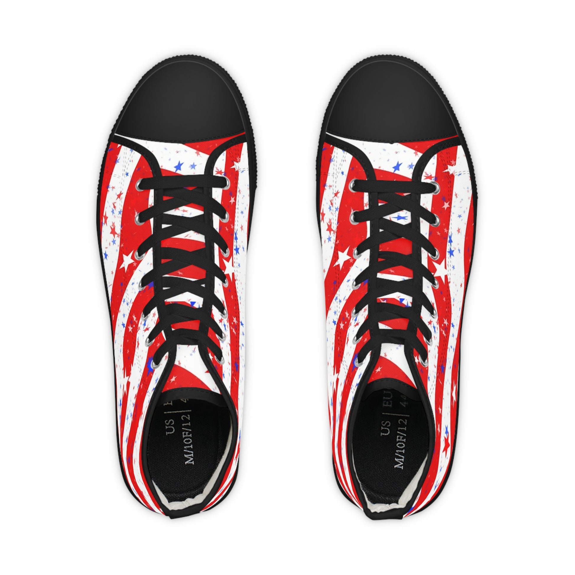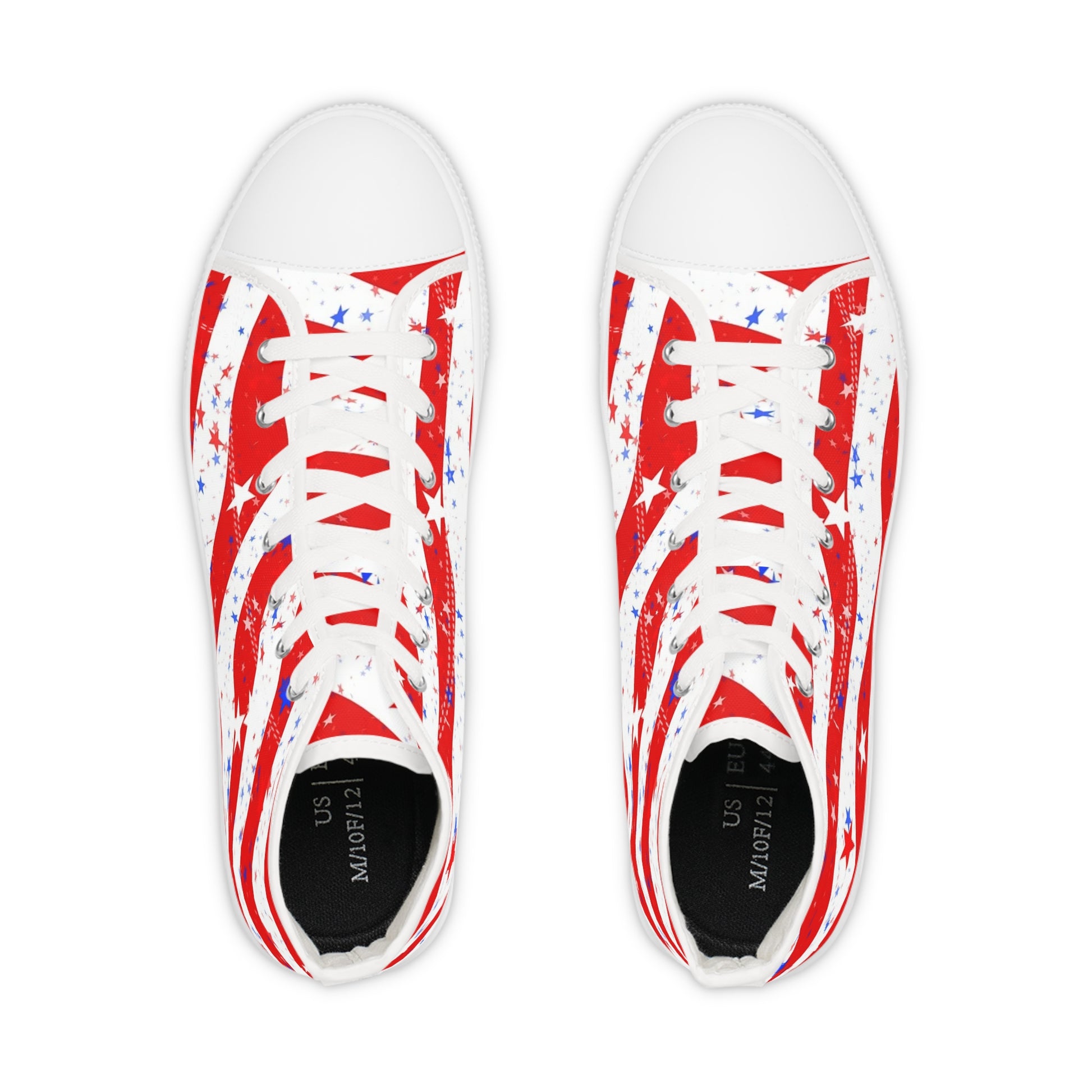 Patriotic High Top Sneakers | Stars & Stripes Comfort Footwear, Festival Shoes, Independence Day Gear, Casual Style, Gift for Him